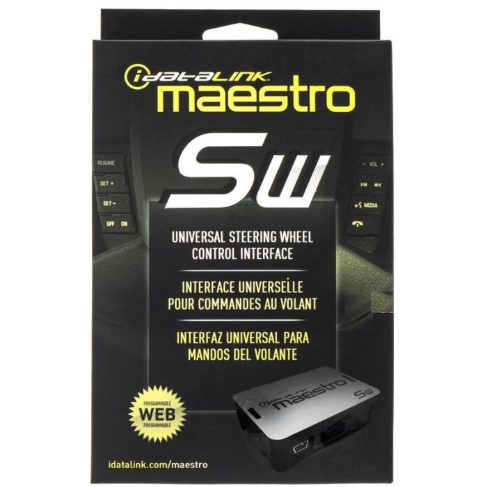 Su interfaz de control de volante universal Maestro le ofrece opciones. Está programado para funcionar con la mayoría de los vehículos de 1998 o más nuevos. Una vez que haya determinado la compatibilidad de su automóvil y radio con el sistema de iDatalink, estará listo para programar las funciones intuitivas del dispositivo. El Maestro le permite usar la configuración actual del volante o agregar propiedades secundarias, como mantener presionado para silenciar.
